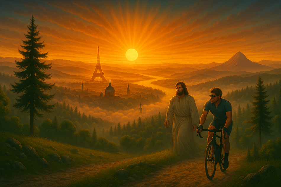 Das Schloss thront über dem Tal wie ein stiller Beobachter, der sich seit Jahrhunderten fragt, warum Menschen freiwillig schwitzen, wenn es Bänke gibt. Von hier oben sieht man Spiez, den Thunersee und irgendwo weit hinten die Illusion von flachem Gelände. Es ist schön, ja, aber auf eine Weise, die weh tut. Du rollst an, der Fürst der Finsternis lehnt sich genüsslich zurück und der Taliban nickt zufrieden: der Plan geht auf. Die Strecke ist gnädig, aber nur auf den ersten Blick. In Wahrheit ist sie ein höfischer Tanz: immer elegant, aber mit Tritt in die Waden. Hier oben weht ein Wind, der klingt wie ein Applaus. Oder wie das Flattern der Nervenfasern unter Deiner Haut. Die Sonne brennt, das Vorderrad zittert leicht und Du denkst: Vielleicht war das ja alles gar keine Schnapsidee. Vielleicht ist es einfach göttlicher Wahnsinn. Dann klickst Du wieder ein, blickst auf den See und irgendwo tief drin flüstert eine Stimme: "Noch 42 Kilometer. Ein Nickerchen entfernt vom Ruhm."