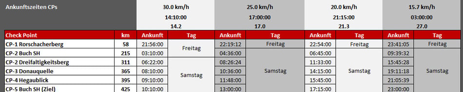 | 23:00 Uhr | Spätmöglichste ZIELEINFAHRT (max. 27 h) |