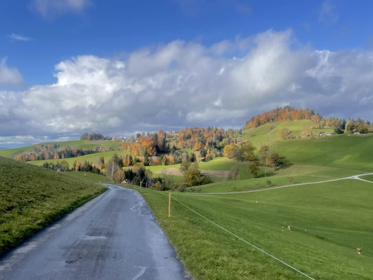Bienvenue à Lucens. Das Schloss thront über dem Dorf wie ein Denkmal für Menschen, die keine Pausen mögen. Früher bzw. von 1536 bis 1798 residierten hier Berner Edelleute, heute rollst Du keuchend den Hügel hoch und hoffst, dass wenigstens jemand Kaffee hat. 177 Kilometer. Der Punkt, an dem Du merkst: Der Hinweg war kein Aufwärmen, das war der erste Akt einer griechischen Tragödie. Der Taliban der Randonneure nickt wieder zufrieden. Fairer Anstieg, ehrlicher Schmerz, kein Mitleid. Der AUDACHS kaut irgendwas und murmelt: "Ab jetzt wird es interessant."