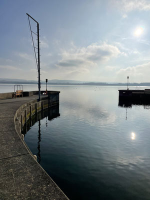 Der Ort, an dem selbst gestandene Randonneure kurz darüber nachdenken, einfach am See zu bleiben und Touristen zu werden. Das Schloss liegt da wie gemalt, der Thunersee glitzert, die Alpen posieren im Hintergrund und Du siehst aus, als hätte Dich gerade ein Schaf geboxt. 460 Kilometer. Das Lächeln ist verschwunden, der Blick leer, aber der Wille lebt. Hier, wo andere Selfies machen, suchst Du Steckdosen. Der Körper schreit, der Geist philosophiert und Dein Hinterteil schreibt ein Manifest gegen die Menschheit. Der Taliban der Randonneure flüstert andächtig: "Schmerz ist temporär, Ruhm ist ... auch temporär." Der AUDACHS lehnt sich ans Geländer, schaut auf den See und sagt: "Wunderschön, oder? Schade, dass Du es nicht mehr siehst."