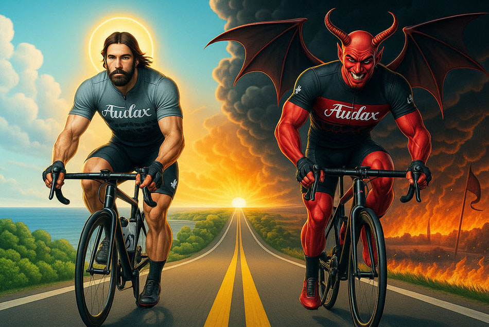 Ehrwürdig, alt, leicht bedrohlich. Der perfekte Ort für den Moment, an dem Du realisierst: Das ist kein Brevet, das ist ein Charaktertest. Früher herrschten hier Grafen über Land und Leute. Heute herrscht hauptsächlich Erschöpfung. 363 Kilometer. Dein Blick leer, Dein Puls hoch, Dein IQ einstellig. Das Schloss schaut Dich an wie ein Lehrer, der weiss, dass Du die Hausaufgaben nicht gemacht hast. Die Beine wollen nicht mehr, der Kopf diskutiert noch, und Dein Magen verlangt seit Stunden nach irgendetwas, das nicht aus Riegelmasse besteht. Der Taliban der Randonneure notiert nüchtern: "Zustand kritisch, Haltung vorbildlich." Der AUDACHS schaut auf Deine Salzränder und sagt: "Wenn Du hier bist, bist Du entweder stark oder zu stolz zum Umkehren."